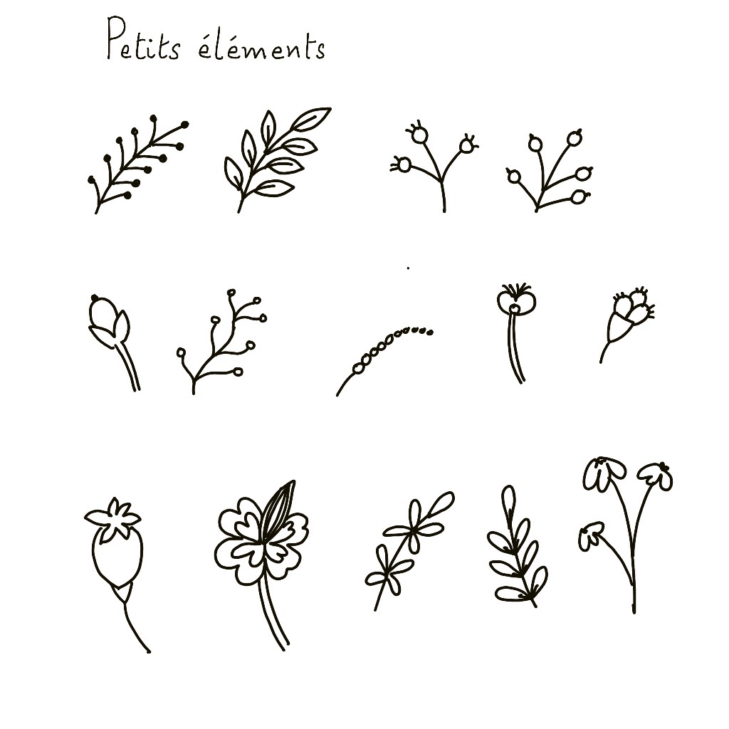 - les formes de base de fleurs, feuillages, branches et rameaux