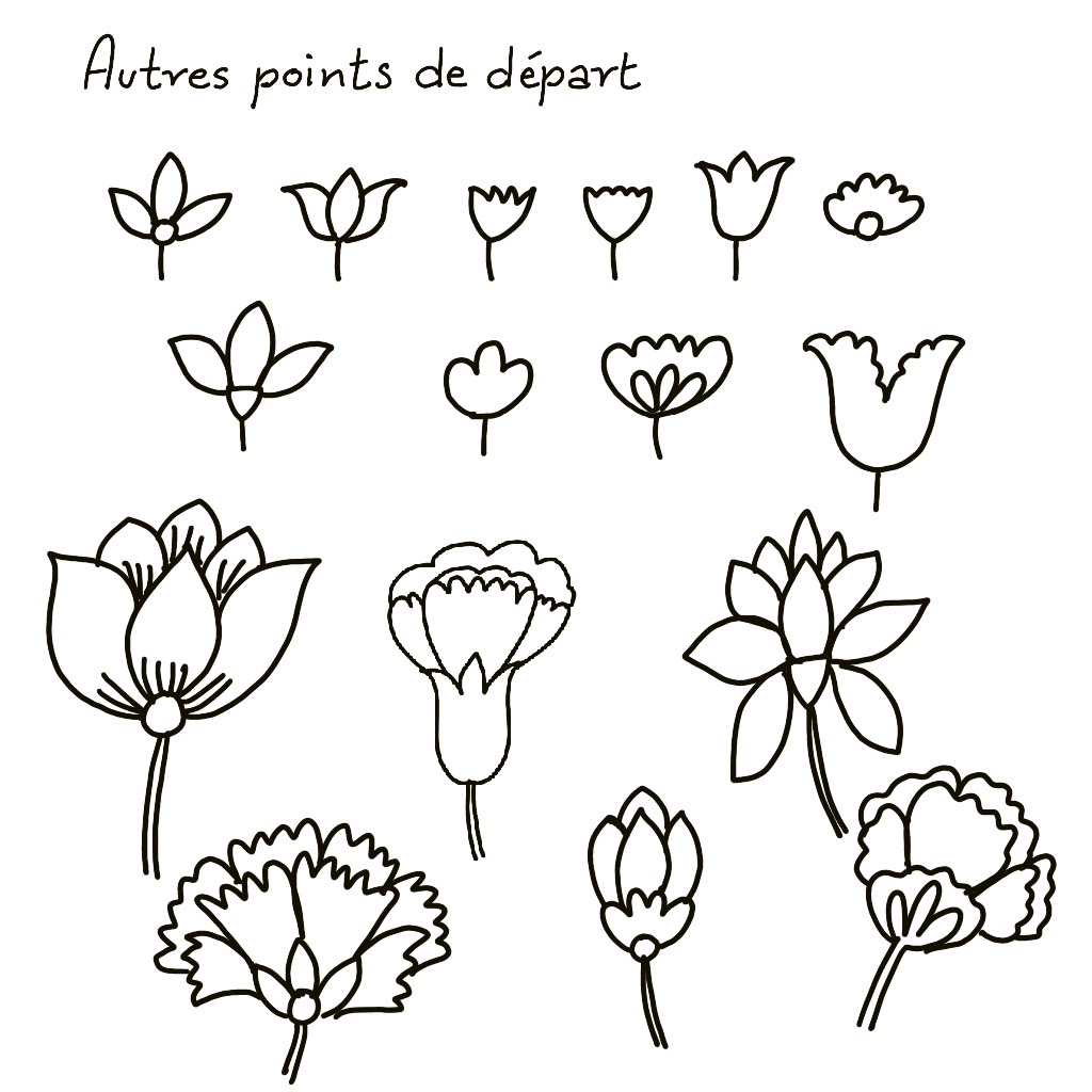 Vous pouvez créer juste pour le plaisir – parce que dessiner des fleurs ça détend ! – ou pour créer des cartes, des enveloppes, des petits tableaux, et pourquoi pas des motifs originaux à broder.