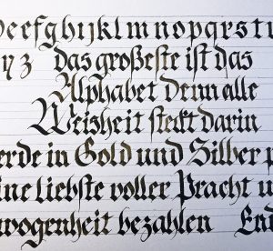L’important lorsque l’on s’entraine est le trait, la forme, l’harmonie et l’équilibre. Ecrire en latin, italien, allemand, anglais, espagnol ou toute autre langue de notre alphabet latin nous autorise à nous concentrer sur tout sauf le sens, donc… sur l’essentiel !