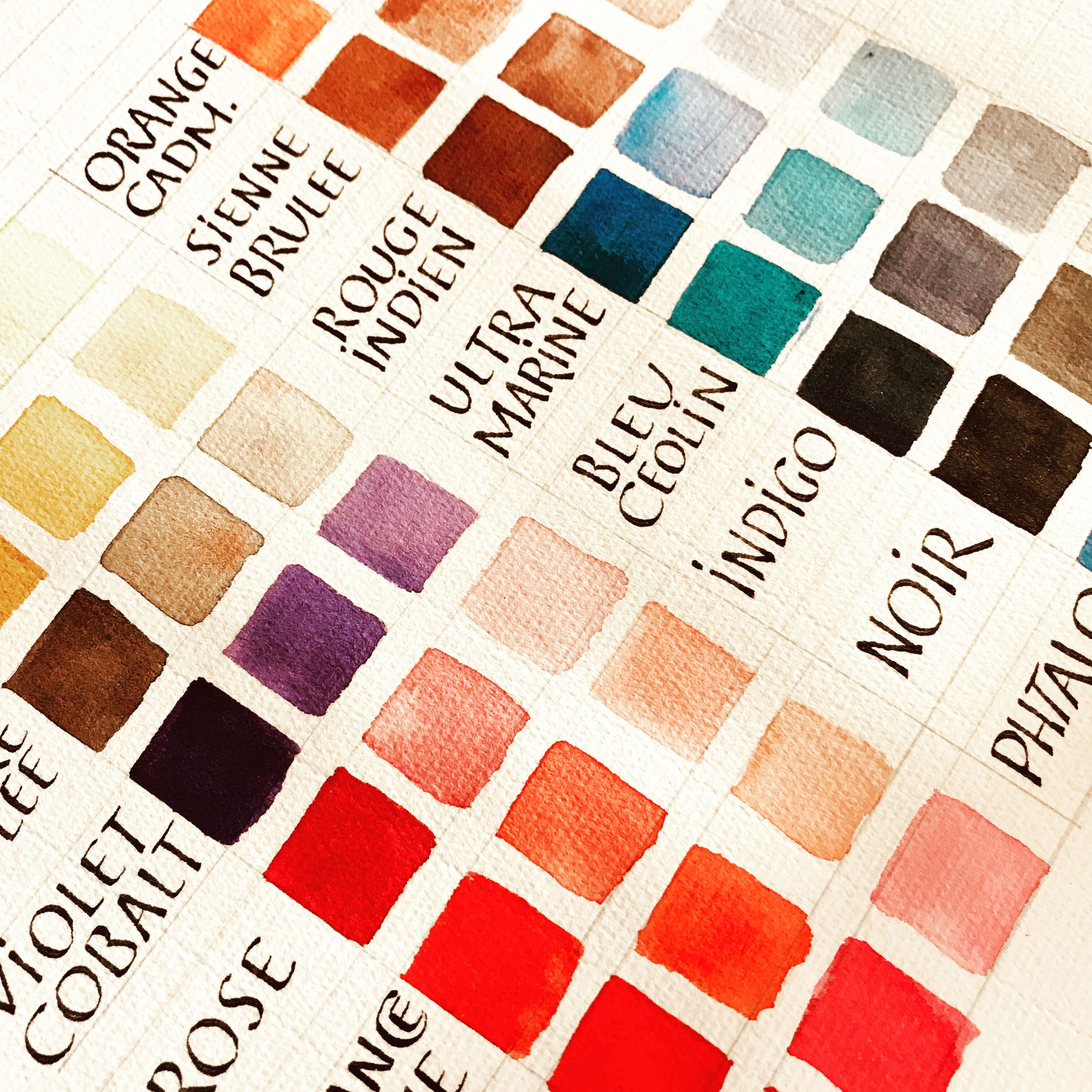 Or, pour connaître vos couleurs, vous avez besoin de les voir telles qu’elles sont réellement. Vous pouvez donc commencer par fabriquer votre propre nuancier sur une feuille dédiée ou dans un petit carnet.