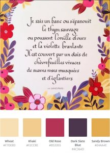 Vous êtes parfois séduits par une atmosphère couleur sur une photo, une illustration, une œuvre d’art. En chargeant l’image sur Canva, l’application va détecter les 5 couleurs dominantes. C’est ainsi plus facile de les recréer. Cela fonctionne relativement bien, mais est surtout utile pour la gouache car les couleurs restituées par Canva sont des aplats opaques.