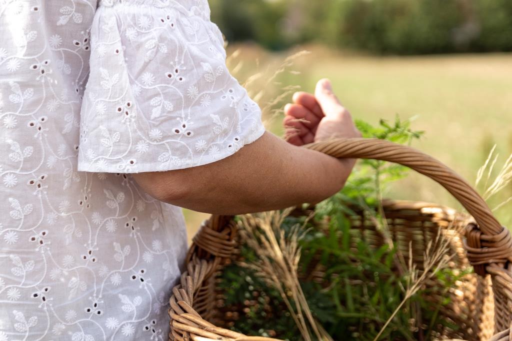 Au point de départ, il y a bien sûr la recherche de feuillages, d’herbes et de fleurs. En forêt, dans votre jardin, en bordure des champs, il faut se laisser porter et sélectionner une belle variété de végétaux. C’est l’occasion d’une jolie ballade-cueillette, avec un petit panier en osier. L’occasion aussi de porter son attention sur toutes ces herbes qui bordent les chemins et auxquelles nous ne faisons pas forcément attention, alors qu’elle ont des formes très graphiques ou très originales.