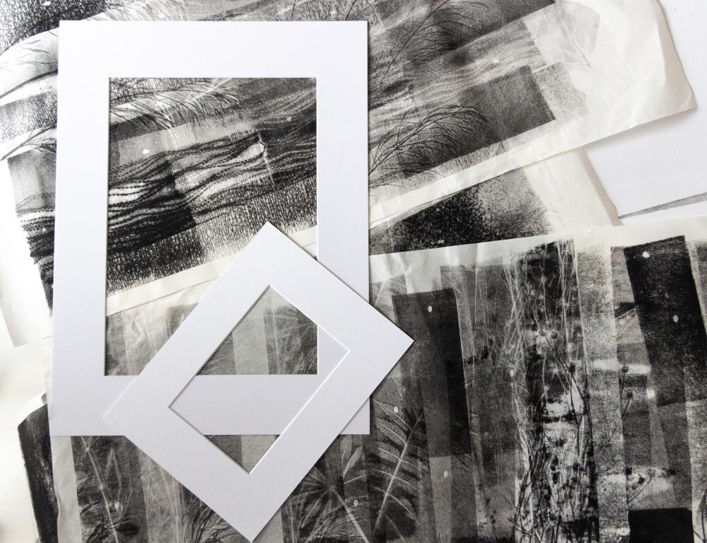 Les planches réalisées peuvent servir plusieurs mois après, au gré de l’inspiration. C’est pourquoi je fais en général une bonne séance par an, soit une dixaine de grandes feuilles, pour avoir un petit stock.