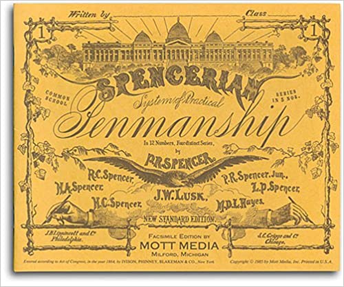 Vers 1840, Platt Rogers Spencer, un enseignant américain, se consacra à l’étude et la mise au point d’une écriture cursive fonctionnelle qui répondrait mieux aux besoins de l’époque : il simplifia considérablement l’anglaise en s’affranchissant notamment des pleins et déliés, des boucles complexes et des majuscules ornementées. Le système d’écriture qu’il proposa alors privilégiait à la fois la lisibilité, une plus grande rapidité d’exécution, sans sacrifier la beauté calligraphique. Sa méthode devint la norme, et la Spencerian fut enseignée à travers tous les Etats-Unis.