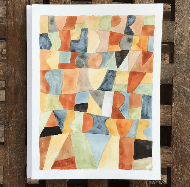 Le premier lettrage que j’ai fait, inspiré du travail de Paul Klee, était dans un carnet, pour me vider la tête et utiliser une fin de palette. Dans la foulée j’en ai fait d’autres, sur du bon papier, à la gouache ou à l’aquarelle.