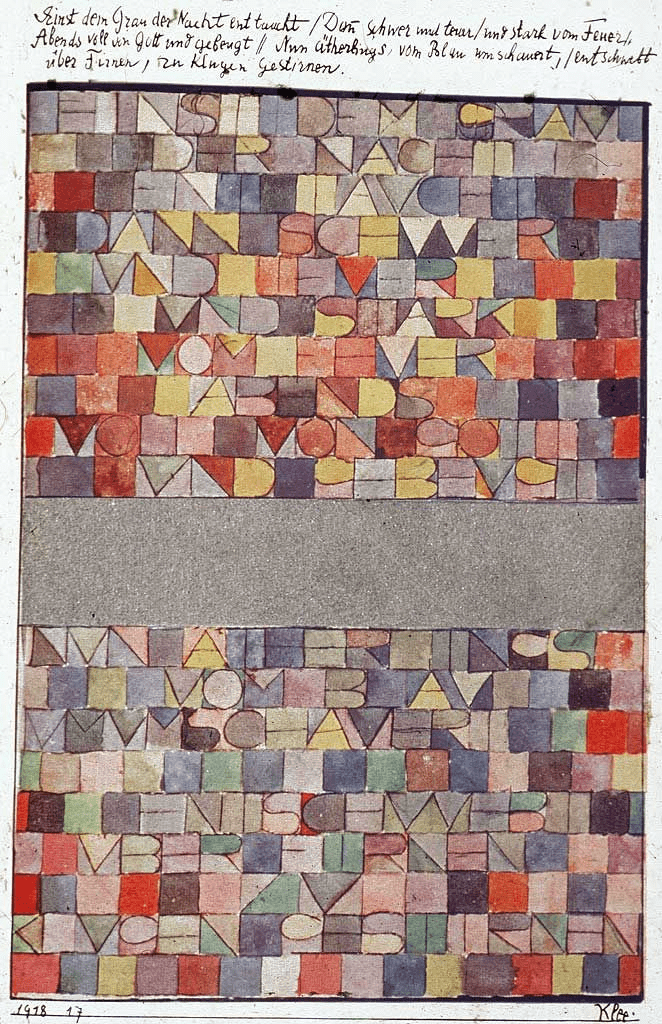 Aujourd’hui je vous propose de partir de l’une des oeuvres les plus célèbres de Paul Klee : « Jadis surgit du gris de la nuit », créée en 1918. Parmi les « jeux de lettres« , c’est un de mes favoris !