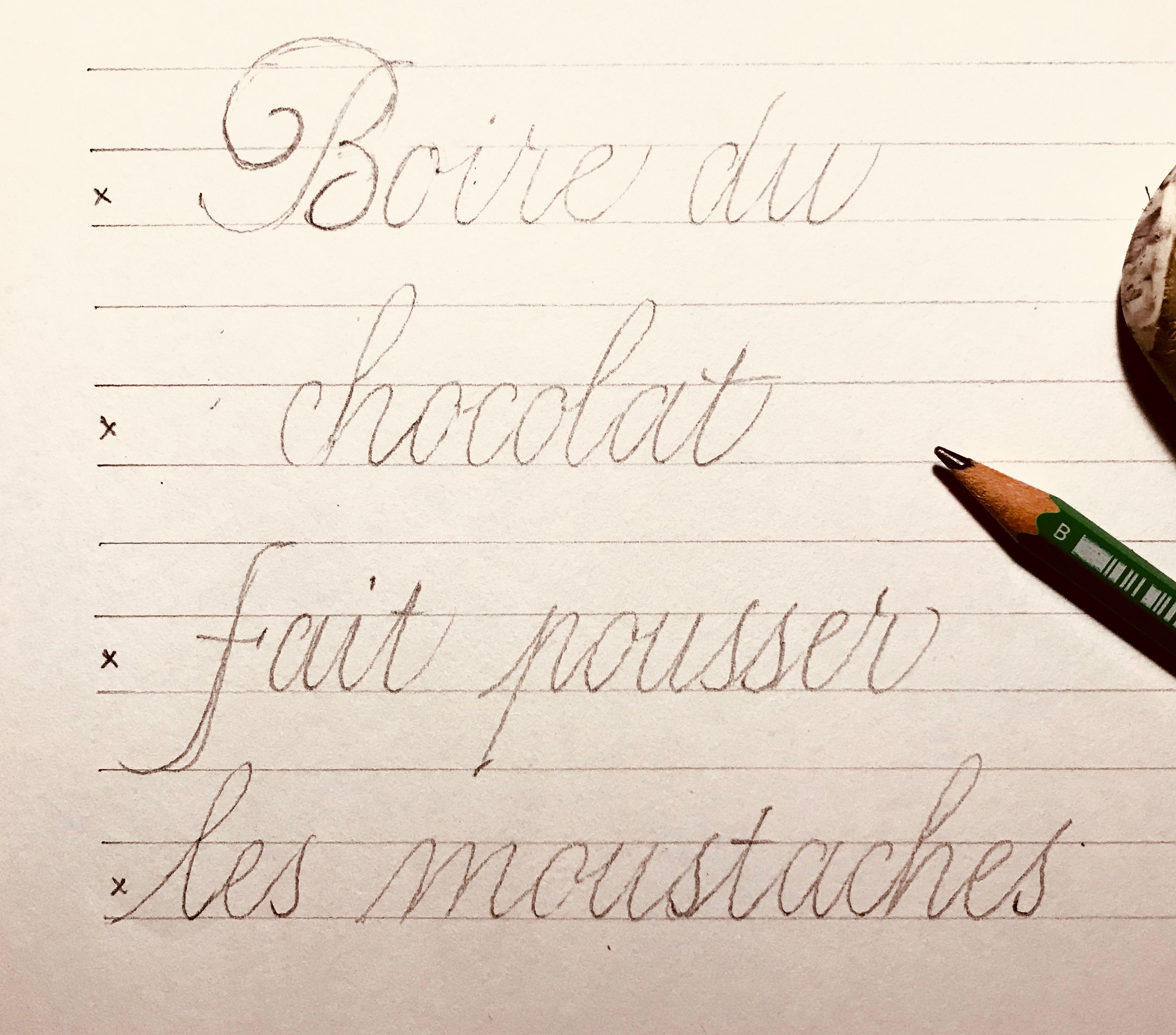 - Prenez une plume avec laquelle vous êtes à l’aise, et un papier bien lisse : ceci pour éviter les accrocs dans le papier et favoriser la glisse.