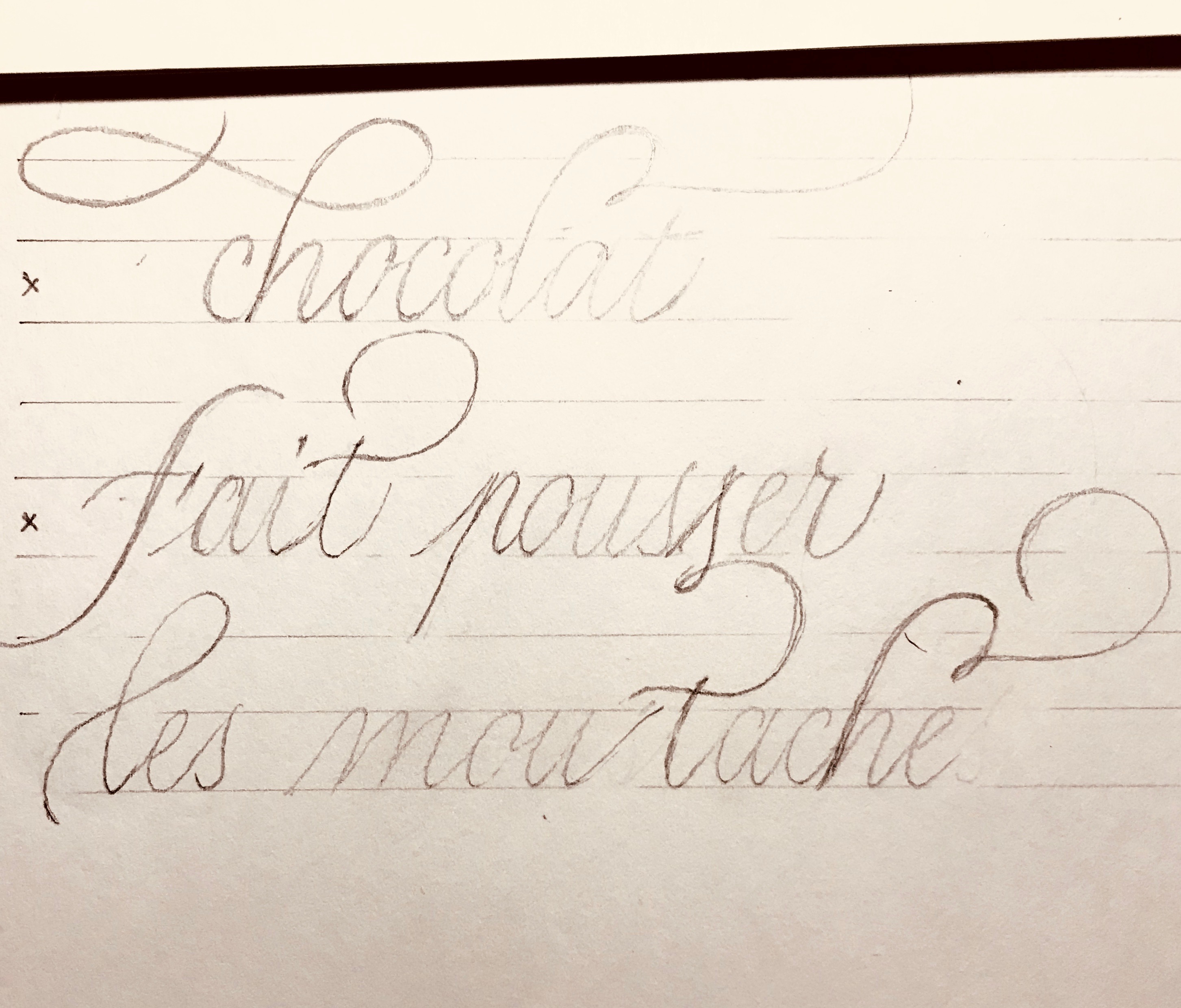 - Finalement la ligature entre le S de « pousser » et la barre du T de « moustaches » a été sacrifiée